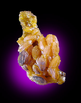 | Description: | Yellow-orange doubly-terminated mimetite crystals 4 mm long in interconnected cluster. |