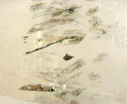 | Description: | Rhombic cleavage of transparent calcite with a layer of brassy-colored chalcopyrite inclusions. The chalcopyrite inclusions are elongated, twisted forms. The front face is very transparent, shows inclusions distinctly. Ex. Reasenberg collection |