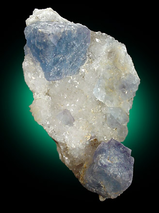 | Description: | Two large (22 and 15 mm) translucent blue fluorite crystals on quartz crystal lined matrix. Good blue color. This specimen should not be exposed to sunlight of the color may fade. |