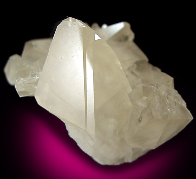 | Description: | Pale-yellow, transparent to translucent calcite crystals from a little-known locality. The calcite fluoresces white under UV illumination. |