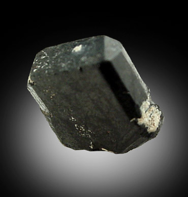 | Description: | Tabular crystal of black to metallic columbite. The crystal shows several modified faces in the corners. Minor pocket clay attached to the crystal edges. Ex. A. Stevenson (1916-2007) collection #102 |