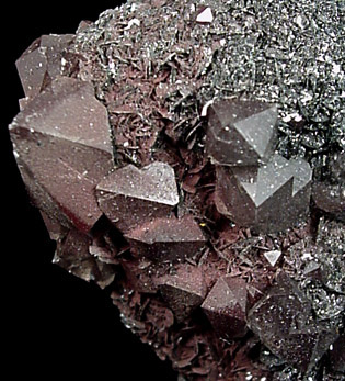 | Description: | Plate of lustrous (specular) hematite crystals up to 3 mm with overgrowth of dipyramidal quartz crystals up to 13 mm. Ex. University of Missouri collection #232.38 |