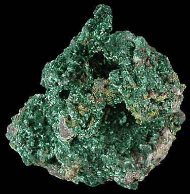 | Description: | Massive cuprite matrix completely overgrown with velvety green malachite crystals. |