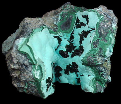 | AllMinerals/JohnBetts-FineMinerals > Online Mineral Museum Photographic Archive > Minerals from Democratic Republic of the Congo > Malachite, Chrysocolla, Heterogenite |