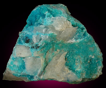 | Description: | Excellent specimen of bright blue turquoise micro crystals selectively covering milky quartz matrix. (I have never seen such a deep blue from this locality before!) The coverage and color make this specimen exceptional. |
