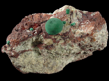 | Description: | Hemispherical formation of velvety green malachite on quartz matrix. |