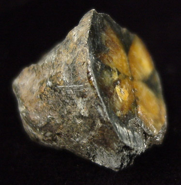 | Description: | Single andalusite crystal showing the unique cross-formation known as chiastolite. This crystal could be sliced to show the progression of the cross-section over it's length. Ex. A. Stevenson collection #825 |