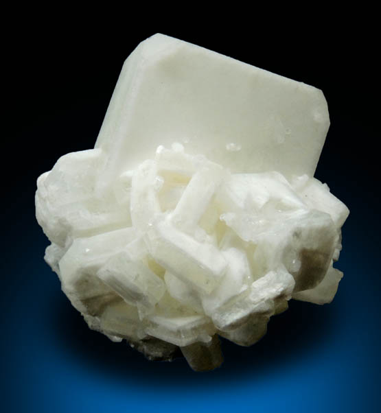 | Description: | Translucent white apophyllite crystals with remnants of styrofoam on the bottom where it was mounted in a Perk-style display box. The apophyllite crystals are tabular (thin rectangular form with translucent center zones and opaque termination faces. Ex. A. Stevenson (1916-2007) collection #623 |