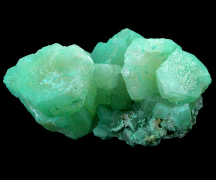 | Description: | Several crystals of yellow cerussite with greenish staining due to copper impurities. |