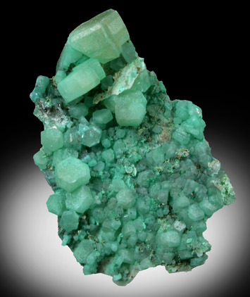 | Description: | Plate of yellow cerussite crystals that are stained green with copper carbonate (malachite) from copper-rich groundwater. |
