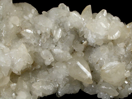 | Description: | Elongated plate covered with doubly-terminated scalenohedral calcite crystals. The calcite crystals are nearly colorless and have lustrous crystal faces. Ex. A. Fernandez collection |