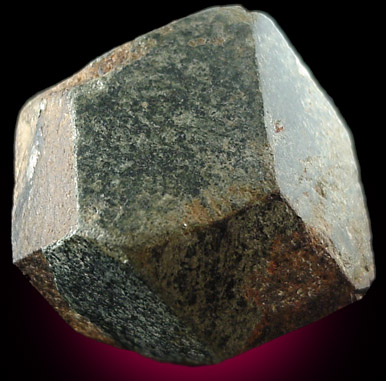 | Description: | Large dodecahedral almandine garnet crystal without matrix. Partial coating of greenish chlorite in some areas. From the classic locality that produced crystals up to 15 cm. This is a good. large crystal that is very complete. |