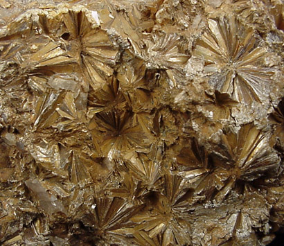 | Description: | Radiating sprays of golden-yellow pyrophyllite crystals. |