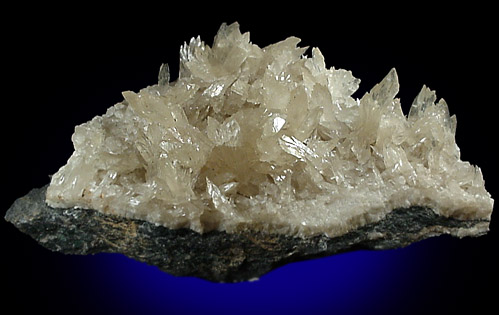 | Description: | Transparent, colorless calcite crystals standing upright vertically off matrix making the transparency very visible. The crystals are compound clusters of scalenohedral forms - very showy. Excellent luster. Very clean, Ex. Lipman calcite collection |