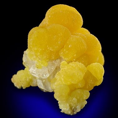 | Description: | Botryoidal yellow mimetite crystals up to 8 mm diameter. Minor colorless calcite crystals on one side. All crystals complete and undamaged. Excellent luster and color. |