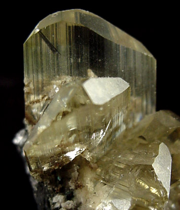 | Description: | Pristine specimen of water-clear anglesite crystals in metallic galena matrix. The anglesite crystals have striated sides and complex terminations. A real beauty! |