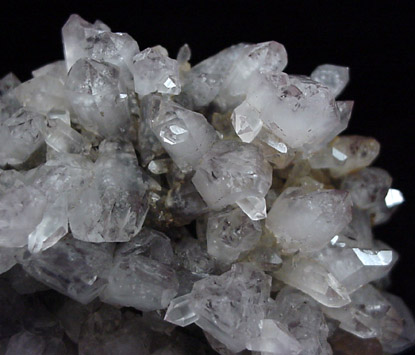 | Description: | Black sphalerite matrix completely covered with transparent, gray quartz crystals. The quartz crystals are scepter shaped (large caps on thinner stems) but the crystals are so densely spaced that the scepters are not visible. |