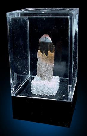 | Description: | Pristine crystal of sherry-colored topaz. The topaz crystal is flawless internally and has many complex faces on the termination. A great specimen - no damage. Mounted in display case for protection. |
