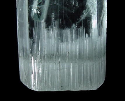 | Description: | Single crystal of blue-green beryl (variety aquamarine) without matrix. The crystal is doubly-terminated. The bottom has a 5 mm layer of hollow, parallel tubes etched in from the termination. Much of the internal crystal is flawless. |