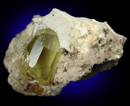 | Description: | Rare matrix specimen of transparent, yellow apatite with pyramidal termination in white quartz matrix. The crystal is nearly flawless internally. |