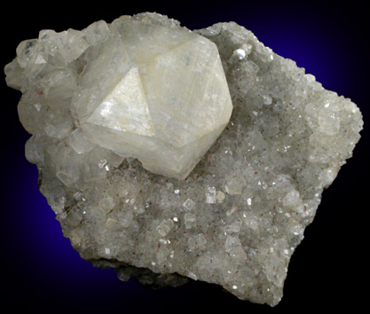 | Description: | Large crystal of colorless apophyllite 18 mm across on matrix coated with 1-3 mm colorless quartz crystals. The apophyllite crystals is pseudo-cubic shape with corner faces (111). Ex. Robert C. Linck (1905-1970) |