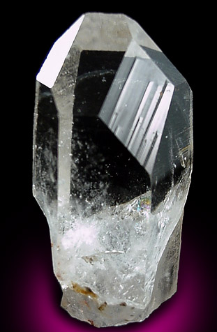 | Description: | Single crystal of transparent quartz with a very large S-face {2111}. The S-face is not common - this one has unusual growth patterns on the surface. Minor chips on the termination. Ex. Robert C. Linck (1905-1970) |