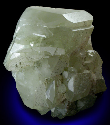 | Description: | Complex cluster of large datolite crystals overgrown on a quartz cast after anhydrite (visible on the rear). The datolite is a light yellow-green color (hard to photograph accurately). Minor imperfections. Ex. Robert Drift collection |