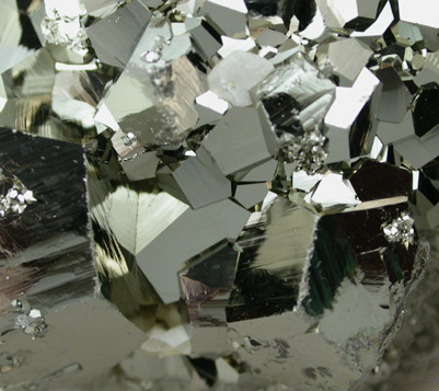 | Description: | Brilliant cluster of pyrite crystals on massive pyrite matrix. The crystals are pyritohedrons and are highly lustrous. |
