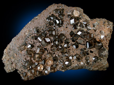| Description: | Lustrous crystals of grossular garnet covering one face of matrix. The grossular crystals are transparent and the color ranges from root-beer to pink (unusual color for this locality). |