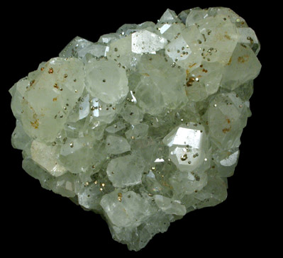 | Description: | Lustrous crystals of mint-green datolite up to 12 mm with overgrowth of scattered .5 mm pyrite crystals. This is a great specimen from a seldom-collected locality. No damage, very clean. |