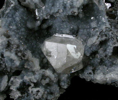 | Description: | Shallow cavity in metallic galena matrix lined with sparkling, translucent anglesite crystals up to 11 mm. The largest crystal is nestled in one corner where it was protected from any damage. |