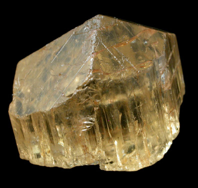| Description: | Gemmy crystal of yellow scapolite with pyramidal termination. Internally large areas are flawless and would yield several large faceted stones up to 15 mm across. Good yellow color, slightly shifted towards sherry-colored. Scattered nicks on some edges. |