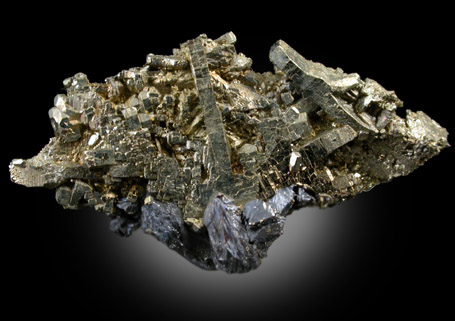 | Description: | Classic cluster of pyrite crystals in a variety of habits. Running vertically through the middle is an elongated crystal 10 mm. On both sides are subparallel clusters of cubic crystals up to 1.5 mm. For more info see: Min. Rec. Nov.-Dec, 1990. Ex. Marcelle (1918-2003) & Charles (1917-2003) Weber |