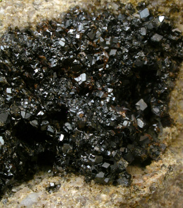| Description: | Pocket 3 cm across filled with 1-2 mm andradite garnet crystals. Looks beautiful under magnification - lustrous, translucent crystals, some in parallel orientation. |