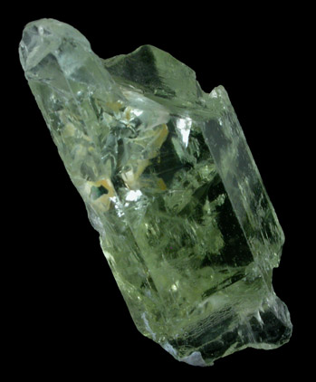 | Description: | Gem crystal of green beryl that intersected another crystal across the top of the termination leaving a three-sided impression. Internally the crystal has several large areas of facet-grade clarity (could create two 3 ct. stones). |