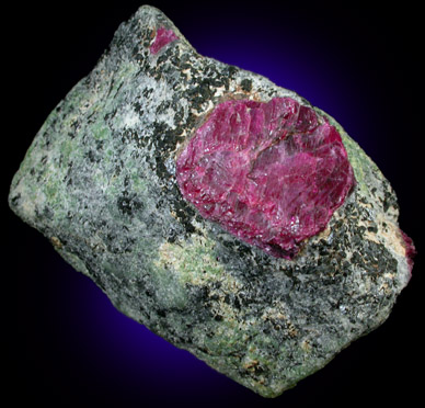 | Description: | Flattened crystal of ruby corundum in green matrix of chrome-rich diopside. Superb color on the ruby. Ex. Stuart F. Wise collection #198 |