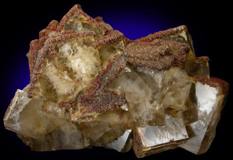| Description: | Translucent crystals of yellow fluorite up to 30 mm with partial overgrowth of brown siderite crystals. The fluorite fluoresces bright violet under UV illumination. For more info on UK fluorite see the Rocks and Minerals, Nov.-Dec., 2004. Ex. A. Lincoln Sherk II, MD. (1896-1970) |