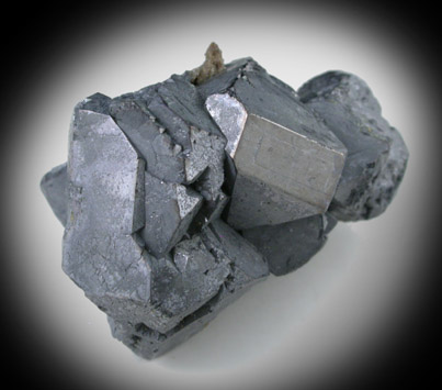 | Description: | Complex crystal of metallic galena with red sphalerite microcrystals on the bas. The crystal form appears to be cubo-octahedral, but are in fact tetrahexahedral faces (rare). |