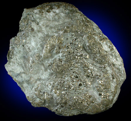 | Description: | Heavy specimen of metallic pyrite crystals in greenish actinolite matrix. On the top surface the pyrite is well exposed with many crystals visible and most are complete and undamaged. Ex. Stuart F. Wise collection |