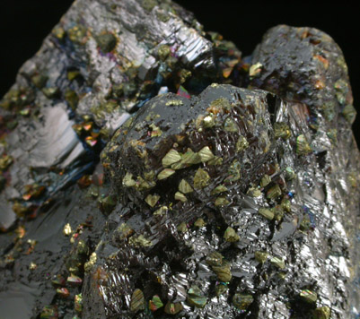 | Description: | Showy cluster of sphalerite crystals up to 3 cm with epitaxial (oriented to underlying mineral structure) overgrowth of brassy chalcopyrite crystals up to 2 mm. Hard to photograph specimen, must be seen in person to be appreciated. Ex. Stuart F. Wise collection #137 |