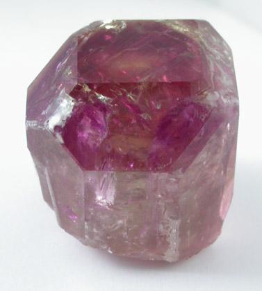 | Description: | Single crystal of lustrous vesuvianite with deep raspberry-pink color when viewed down the termination face (rare color!). The crystal is prismatic shape with well developed, complex termination with no external damage. |