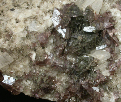 | Description: | Many crystals of pink-to-brown axinite crystals on matrix with adularia and chlorite. Undoubtedly from the old locality on Mount Monzoni dating to the late 1800s. Ex. A. Lincoln Sherk II, MD. (1896-1970); ex. George English (1864-1944) |