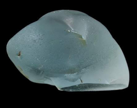 | Description: | Rounded crystal of transparent topaz. Color is pale blue-green. Rounded surfaces are due to alluvial wear - the crystal is from a stream deposit. One face has a flat cleavage revealing the flawless interior. |