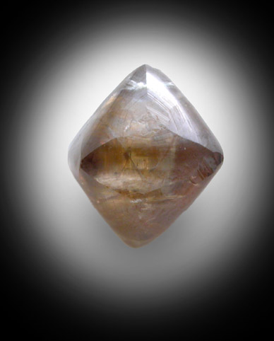 | Description: | Transparent octahedral diamond crystal with medium yellow-brown color. The crystal faces show complex development of trapezohedral faces around the octahedral faces. |