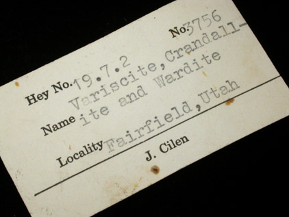 | Locality: | Clay Canyon, Fairfield, Utah County, Utah (Type Locality for Wardite) |