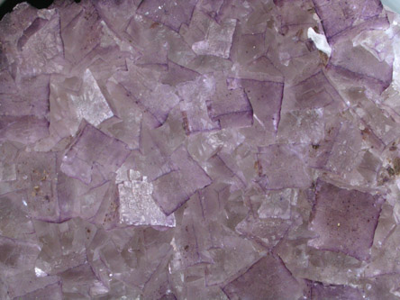 | Description: | Thin plate of translucent purple fluorite crystals. The fluorite crystals are cubic form with complex crystallized patterns on the faces. |