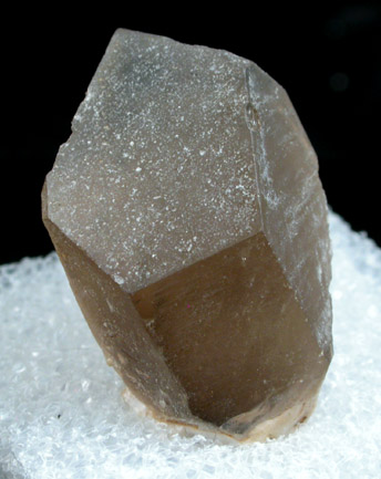 | Description: | Single crystal of translucent smoky quartz mounted in an acrylic Perky display box for protection. The crystal has minute internal inclusions that make it milky. Edge chipping in areas. |