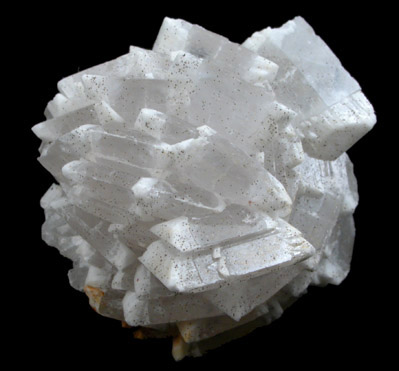 | Description: | Hemispherical cluster of colorless barite crystals. The barite crystals are predominantly translucent, but have opaque white corners. The barite crystals are tabular with beveled edge faces. |