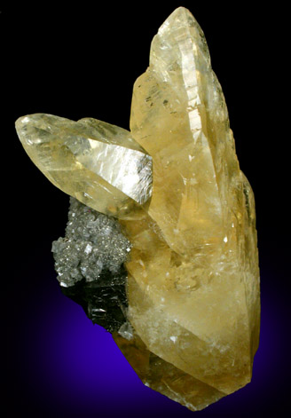 | Description: | Two crystals of yellow calcite up to 7 cm long with metallic galena crystals up to 12 mm on the base. The calcite crystals have excellent deep-yellow color and complex crystal patterns on the surfaces. Ex. Clyde Hardin |