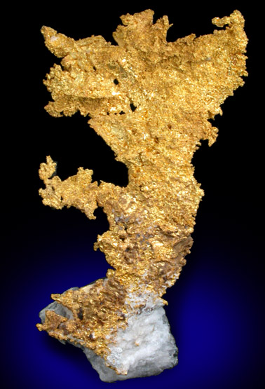 | Description: | Large leaf-like mass of crystallized gold with small fragment of quartz matrix on the base. Looks beautiful under magnification - the entire surface is covered with minute crystal faces up to 1 mm. |